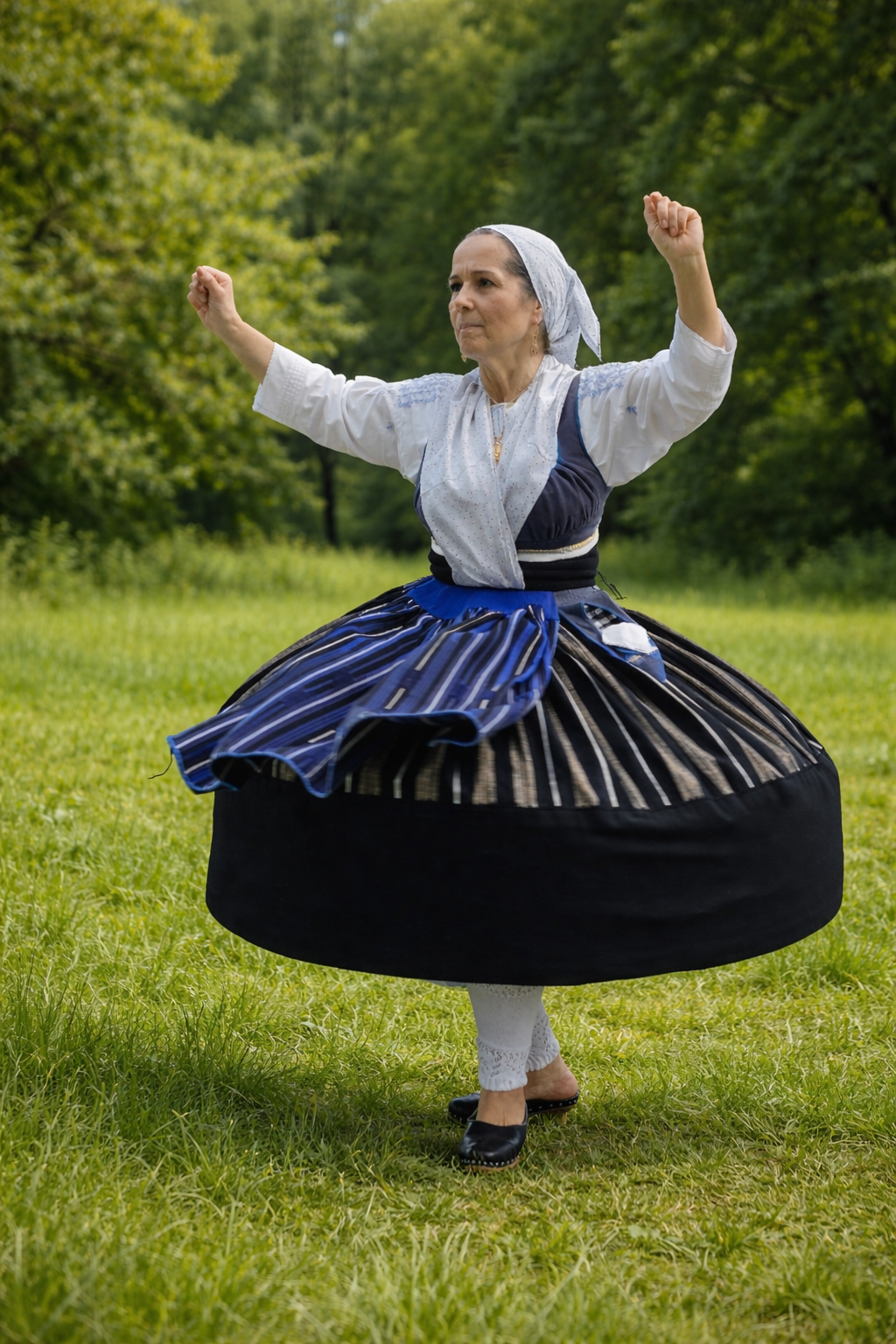 Die gefalteten Röcke verliehen Bewegung und Schwung, besonders bei Tanz und Festen. Die bestickten Schürzen zeigten Sorgfalt und Handarbeit, während das Kopftuch nicht nur Schutz bot, sondern auch die Persönlichkeit und den Familienstand widerspiegeln konnte.